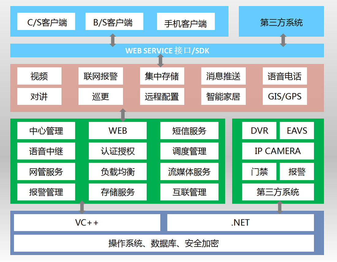 短信/彩信转发模块:根据用户的需求,系统自动把报警信息以短信的方式发给用户,短信具备PUSH功能,点击自动进入视频链接。